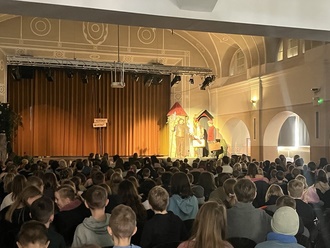Die Kinder der Ahornschule und Palmbergschule unternahmen am 27.11.2025 einen Ausflug nach Homberg in die Stadthalle zur Kleinen Bühne Schwalm-Eder. Morgens ging es mit dem Bus los und die Vorfreude der Schülerinnen und Schüler war überall spürbar.