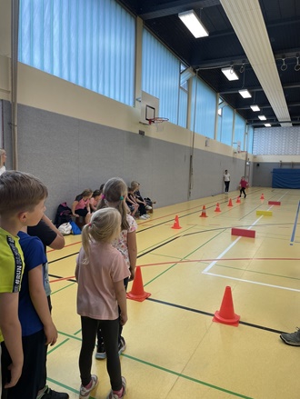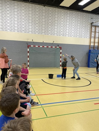 Am 4. Juni war es soweit: Die Bundesjugendspiele der Palmbergschule und der Ahornschule fanden auf dem Gelände der Palmbergschule in Frielendorf statt. Dazu wurden die Kinder der Ahornschule mit dem Bus nach Frielendorf gefahren. Die Veranstaltung begann mit einem gemeinsamen Eröffnungstanz in der Turnhalle. Die Stimmung war trotz des regnerischen Wetters voller Energie und Vorfreude. Die Stationen zum Werfen, Springen und Laufen waren in der Turnhalle, in der Schule und auf dem Außengelände aufgebaut. Eine größere Regenpause am Vormittag nutzen die Kinder, um die Stationen auf dem Außengelände zu absolvieren. Für einige Klassen fand der Transportlauf aufgrund der Wetterlage spontan in der Turnhalle statt. Trotz der Schauer gaben alle Kinder ihr Bestes und hatten viel Freude an den Stationen. Ein ganz herzliches Dankeschön geht wie in jedem Jahr an die helfenden Eltern an den Stationen und am Buffet. Vielen Dank für Ihren tollen Einsatz! Wir freuen uns schon auf die nächsten Bundesjugendspiele und hoffen auf besseres Wetter!