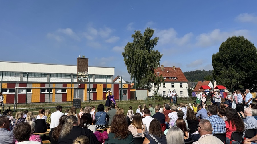Dieser besondere Tag begann mit einem Gottesdienst in der Klosterkirche in Spieskappel, der von Pfarrer Firnges als Vertreter der evangelischen Kirche sowie von Pater Aloisius als Vertreter der katholischen Kirche sehr abwechslungsreich gestaltet wurde. Anschließend wurden die neuen Schulkinder und ihre Familien auf dem Schulgelände von der Schulleiterin Saskia Krössin-Schmidt herzlich begrüßt. In ihrer Rede nahm sie den Kindern die Angst vor dem Schulanfang. Für besondere Stimmung sorgten auch die Klassen 2a und 2b, die zwei fröhliche Lieder vorbereitet hatten. Außerdem führten sie ein kleines Theaterstück auf, das mit den Worten „Willkommen in der Schule!“ endete.