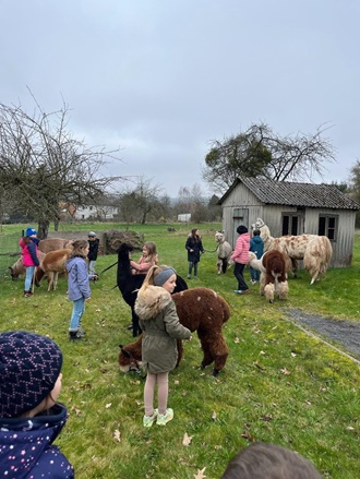 Die Schülerinnen und Schüler konnten viel über die Haltung und Pflege der Tiere lernen und durften sogar selbst Hand anlegen, indem sie die Tiere fütterten. Besonders aufregend war es, als die Kinder in kleinen Gruppen mit den Lamas und Alpakas spazieren gehen durften. Die Tiere waren sehr geduldig und ließen sich gerne von den Kindern führen. Es war ein unvergessliches Erlebnis für alle Beteiligten.