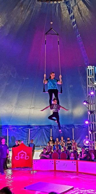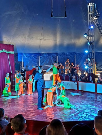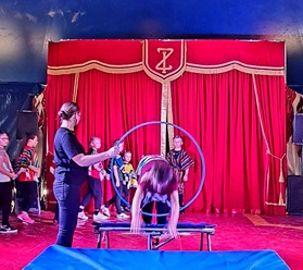 In der letzten Juniwoche war der Mitmachzirkus Inakso der Familie Lagrin zu Gast an der Palmbergschule. Alle Kinder der Ahorn- und Palmbergschule konnten in verschiedenen Disziplinen wie Hula-Hoop, Fakire, Tiger, Bodenturnen, Clowns oder Trapez Zirkusluft schnuppern und in ihrer Gruppe eine eigene "Zirkusnummer" gemeinsam mit den Trainern und Trainerinnen des Zirkusteams einstudieren. An drei Nachmittagen konnten dann Eltern, Geschwister, Großeltern, Lehrerinnen und Lehrer und alle Interessierten eine zweistündige, hochprofessionelle Zirkusvorstellung unter Mitwirkung der Kinder bestaunen.
