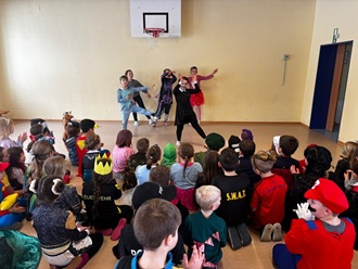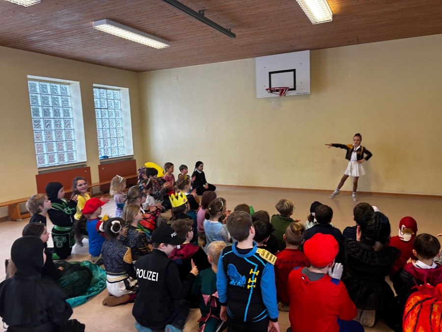 Danach ging es in die Turnhalle! Dort haben wir fröhlich getanzt und viele lustige Faschingsspiele gespielt. Die Musik hat alle zum Mitmachen animiert! Die Kinder hatten eine tolle Zeit, voller Lachen und Freude.