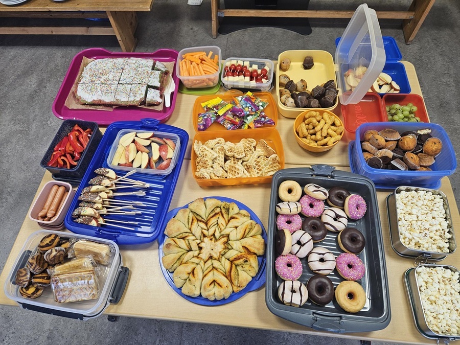 Gemeinsam haben alle Klassen ein leckeres Buffet organisiert. Von Brezeln über Obstspieße bis zu süßen Köstlichkeiten war für jeden etwas dabei.