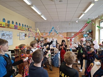 In den Klassen wurde gespielt, getanzt und gelacht. Bei fröhlicher Musik und lustigen Spielen kam echte Feierlaune auf und die Zeit verging wie im Flug.