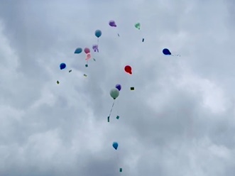 An der Palmbergschule wurden die Viertklässler nach der feierlichen Zeugnisübergabe, zu der alle Eltern der Klassen 4a und 4b eingeladen waren, draußen vor der Turnhalle von den Kindern der Klassen E1 bis 3, die Spalier standen, überrascht. Im Anschluss daran ließen die Viertklässler Luftballons in den Himmel steigen. Diese schöne Idee hatten die Eltern der Viertklässler organisiert, danke für diese tolle Aktion!