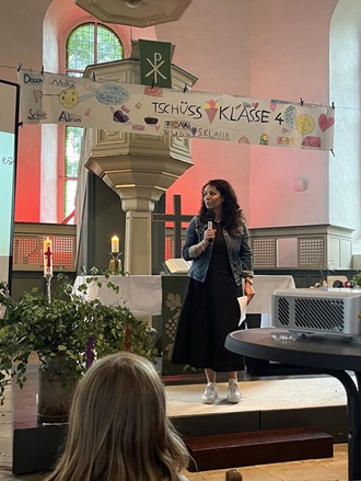 Die Verabschiedung der 4. Klasse an der Ahornschule war ebenfalls ein emotionales und bewegendes Ereignis. In der Großropperhäuser Kirche kamen alle Eltern zusammen, um ihre Kinder bei diesem besonderen Abschied zu begleiten. Frau Wagner, die Klassenlehrerin der 4. Klasse, verabschiedete sich von ihren Schülerinnen und Schülern mit persönlichen Worten und guten Wünschen für ihren weiteren schulischen Werdegang. In einer Diashow wurden die vielen Erlebnisse und gemeinsamen Momente der Klasse gezeigt, was bei allen Beteiligten für viele schöne Erinnerungen sorgte. Die Klassen E1 und 1 beeindruckten mit einem einstudierten Lied und die Klasse 2 begeisterte mit einem Tanz. Als Überraschung überreichte die Klasse 4 ihrer Lehrerin eine Schatzkiste mit Erinnerungen an die gemeinsame Zeit. Zum Abschluss ließen die Kinder Luftballons steigen und wurden symbolisch mit dem Schwungtuch aus der Grundschulzeit "rausgeschmissen". Die Verabschiedungsfeier war ein gelungener und emotionaler Abschluss für die 4. Klasse, die nun gespannt den neuen Herausforderungen an der weiterführenden Schule entgegenblickt.