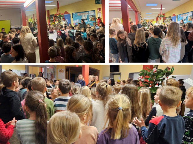 Auch in diesem Jahr stimmt sich die Palmbergschule gemeinsam auf die Adventszeit ein. An den drei Montagen im Advent versammeln sich alle Schülerinnen und Schüler, Lehrkräfte und Mitarbeitenden morgens im Flur am geschmückten Tannenbaum zum traditionellen Adventssingen.
