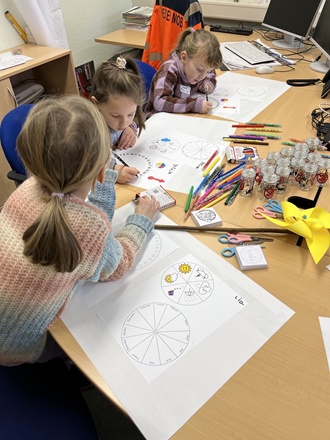 Angekommen in Schwalmstadt wurden die Kinder herzlich von den Mitarbeitenden der Straßenmeisterei empfangen. Gemeinsam starteten sie eine Führung über das Gelände. Dort erfuhren die Schülerinnen und Schüler viel Wissenswertes über den Arbeitsalltag der Straßenmeisterei. Besonders aufregend war für die Kinder die Möglichkeit, in einem Schneepflug-Fahrzeug mitzufahren. Dabei hatten sie einen tollen Ausblick und konnten hautnah miterleben, wie das Streusalz auf den Straßen verteilt wird. Nach der spannenden Fahrt konnten die Kinder selbst kreativ werden. Sie bauten Vogelhäuschen und bastelten eine Wetteruhr, sowie ein Windrad. Ein weiteres Highlight des Ausflugs war die Besichtigung des Streusalz-Lagers. Hier erfuhren die Kinder, wie das Salz gelagert und verwendet wird, um im Winter die Straßen sicher zu machen. Zum Abschluss durfte jedes Kind sogar ein kleines Gefäß Streusalz mit nach Hause nehmen – eine tolle Erinnerung an den gelungenen Ausflug.