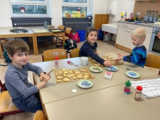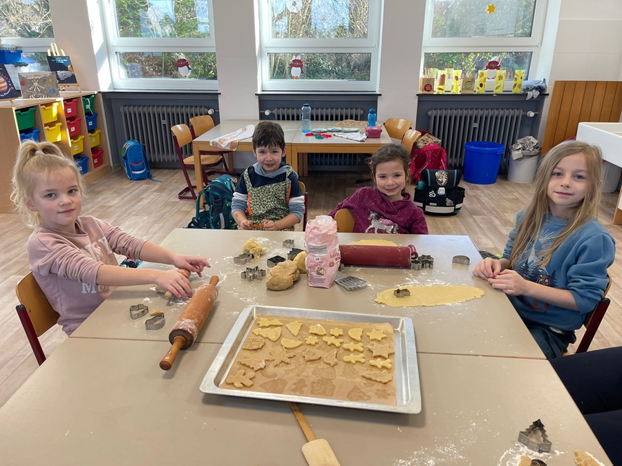 Dank der tatkräftigen Unterstützung einiger Eltern konnte in dem Klassenraum der Klasse E1 und in der Betreuung fleißig gebacken werden. Der verführerische Duft von frisch gebackenen Plätzchen erfüllte die Luft, während die Kinder mit großer Hingabe die Leckereien verzierten. Voller Vorfreude auf das Weihnachtsfest werden die gebackenen Plätzchen nun bis zu den Weihnachtsferien von den Schülerinnen und Schülern in den einzelnen Klassen verzehrt.