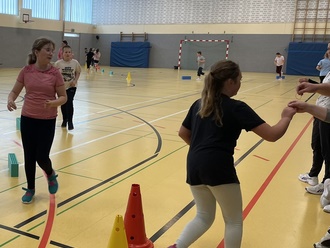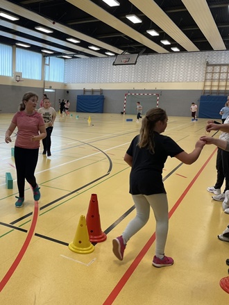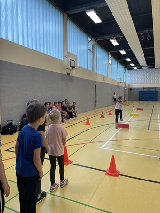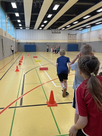 Am 4. Juni war es soweit: Die Bundesjugendspiele der Palmbergschule und der Ahornschule fanden auf dem Gelände der Palmbergschule in Frielendorf statt. Dazu wurden die Kinder der Ahornschule mit dem Bus nach Frielendorf gefahren. Die Veranstaltung begann mit einem gemeinsamen Eröffnungstanz in der Turnhalle. Die Stimmung war trotz des regnerischen Wetters voller Energie und Vorfreude. Die Stationen zum Werfen, Springen und Laufen waren in der Turnhalle, in der Schule und auf dem Außengelände aufgebaut. Eine größere Regenpause am Vormittag nutzen die Kinder, um die Stationen auf dem Außengelände zu absolvieren. Für einige Klassen fand der Transportlauf aufgrund der Wetterlage spontan in der Turnhalle statt. Trotz der Schauer gaben alle Kinder ihr Bestes und hatten viel Freude an den Stationen. Ein ganz herzliches Dankeschön geht wie in jedem Jahr an die helfenden Eltern an den Stationen und am Buffet. Vielen Dank für Ihren tollen Einsatz! Wir freuen uns schon auf die nächsten Bundesjugendspiele und hoffen auf besseres Wetter!