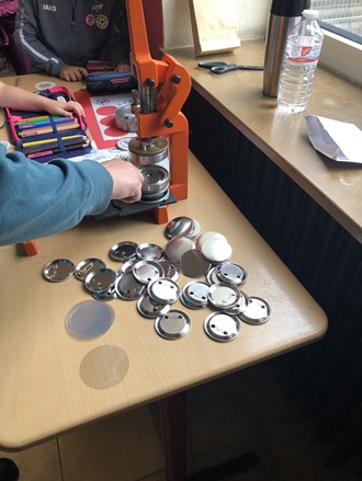 Die Bundesjugendspiele starteten mit einem gemeinsamen Aufwärmtanz auf dem Sportplatz. Die Stationen zum Springen, Sprinten und Werfen waren in der Turnhalle und auf dem Sportplatz aufgebaut. Der Ausdauerlauf führte die Kinder einmal um das ganze Schulgebäude. In den Pausenzeiten zwischen den Stationen konnten sich die Kinder am reich gedeckten Buffet bedienen und ihren eigenen Schulbutton an der Buttonmaschine erstellen.