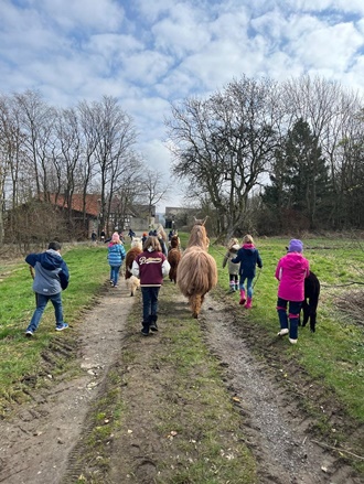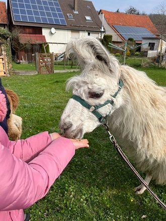 Die Schülerinnen und Schüler konnten viel über die Haltung und Pflege der Tiere lernen und durften sogar selbst Hand anlegen, indem sie die Tiere fütterten. Besonders aufregend war es, als die Kinder in kleinen Gruppen mit den Lamas und Alpakas spazieren gehen durften. Die Tiere waren sehr geduldig und ließen sich gerne von den Kindern führen. Es war ein unvergessliches Erlebnis für alle Beteiligten.