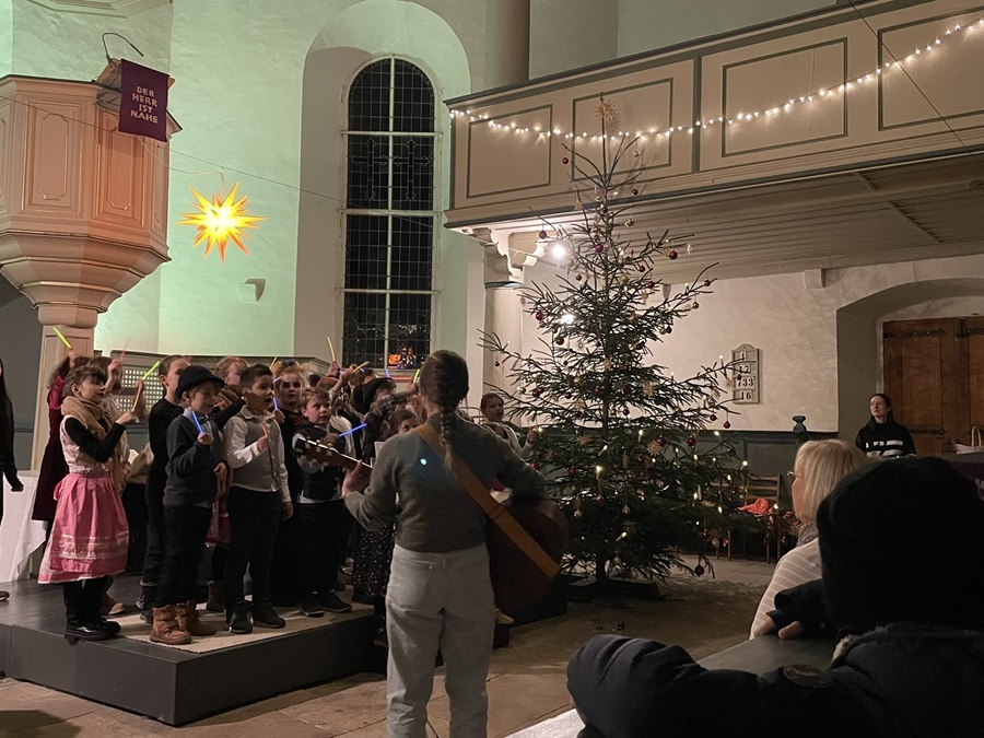 Wechselweise präsentierten die Darsteller lustige Sketche und die Chorkinder zauberhafte Lieder, was das Publikum begeisterte. Der Auftritt war ein voller Erfolg! Die Zuschauer belohnten die Darbietungen mit großem Applaus. Es war eine Freude zu sehen, wie viel Herz und Engagement in jede Darbietung gesteckt wurde. Die Kinder und alle Beteiligten waren sich einig, dass sie solch einen Auftritt in Zukunft gerne wiederholen möchten.