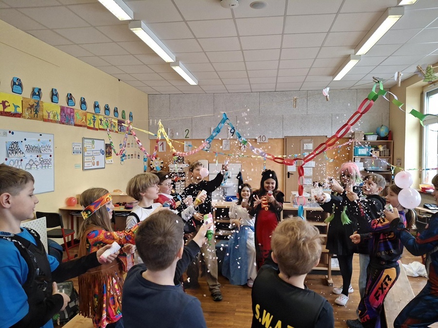 In den Klassen wurde gespielt, getanzt und gelacht. Bei fröhlicher Musik und lustigen Spielen kam echte Feierlaune auf und die Zeit verging wie im Flug.