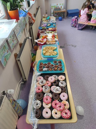 Gemeinsam haben alle Klassen ein leckeres Buffet organisiert. Von Brezeln über Obstspieße bis zu süßen Köstlichkeiten war für jeden etwas dabei.