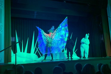 Die Aufregung war groß, als am Donnerstag, dem 24. November 2022 der Doppeldeckerbus in Großropperhausen vor der Ahornschule hielt. Die gesamte Schule machte sich voller Vorfreude nach zwei Jahren Coronapause auf den Weg nach Homberg, um sich das Weihnachtsmärchen der „Kleinen Bühne Schwalm- Eder e.V.“ anzuschauen. Liebevoll und detailreich inszeniert wurde das Märchen „Die Schneekönigin“ frei nach Hans Christian Andersen. Voller Faszination verfolgten die SchülerInnen die Geschichte um Gerda, Kai und dem zerbrochenen Zauberspiegel, womit eine aufregende Reise zum Palast der Schneekönigin begann.